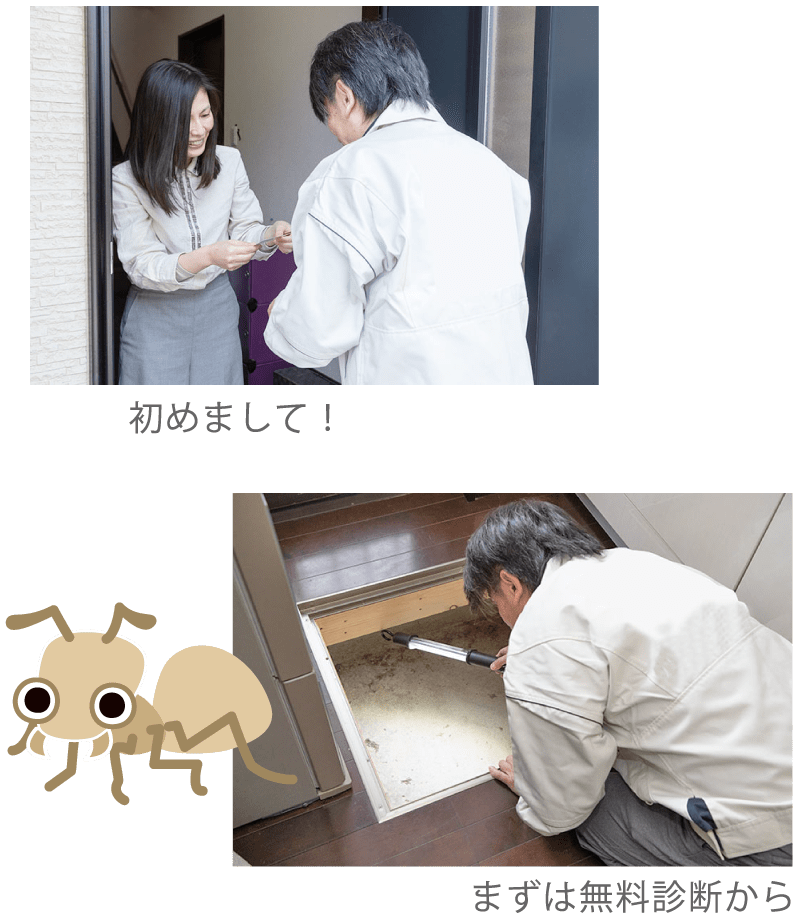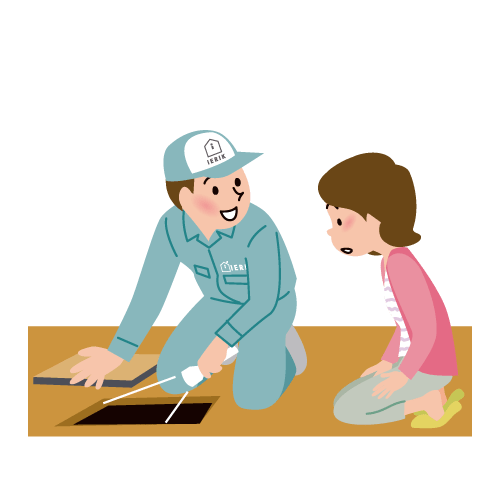 費用が適正かどうか不安なお客様のためにイエリクでは無料床下診断の後に明瞭にお見積りをし、ご了承いただいた上で防除処理を行います。床下診断のお申込み後、ご都合のよい日にスタッフが伺い、床下を調査。結果をご説明します。なんでもご相談ください!