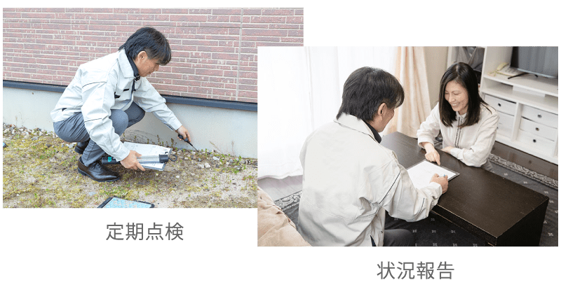 きちんと処理をしても、外部からシロアリが侵入するなど、床下被害はいつ「再発」するか分かりません。防除後も安心して暮らせるように、ご連絡を差し上げ、無料にて点検にお伺いいたします。防湿・防カビ対策に対しても定期点検を行なっております。